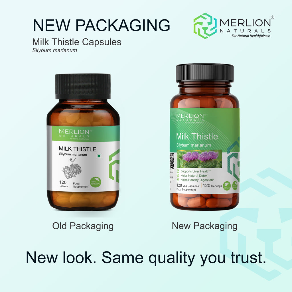 Merlion Naturals Milk Thistle Capsule is a natural herbal supplement and contains the goodness of high quality Milk Thistle ( Silybum marianum ) in form of Capsules. The active ingredients in milk thistle are a group of plant compounds collectively known as silymarin.